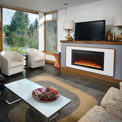 Найкращий електричний камін у вітальні від Наполеон. Їх назва далеко не випадкова: електричні каміни серії Napoleon Premium Fire PURVIEW™ забезпечують чистий вид на штучне полум'я. Це пов'язано з вузькою рамкою переднього скла з високоякісного вогнетривкого матеріалу, що збільшує площу зображення на 25 відсотків. Бачити більше означає отримати більше затишку у вашому домі.