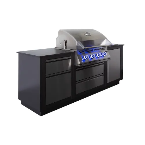 Окрема гриль зона або вбудований гриль ідеально підходить для створення райського куточка на задньому дворі свого будинку. Модульний острів Oasis 100 з грилем є ідеальним островом для раціонального використання простору та бюджету. Отримайте гриль та готуйте зовні. З літніми кухнями Oasis Ви можете вибрати шафи, які відповідають Вашим потребам, щоб створити комфортну гриль зону для зовнішніх кулінарних шедеврів. Модульні елементи виготовлені з оцинкованої сталі з порошковим покриттям та дверима з нержавіючої сталі, так що немає нічого, що не може витримати цей острів. Просте встановлення означає відсутність будівельних матеріалів або важкого обладнання. Ці шафи оснащені заглушками для електрики та газу, а також ніжками, що регулюються по висоті. Ваша тераса на задньому дворі заслуговує на те, щоб мати літню кухню Oasis, і Ви теж.