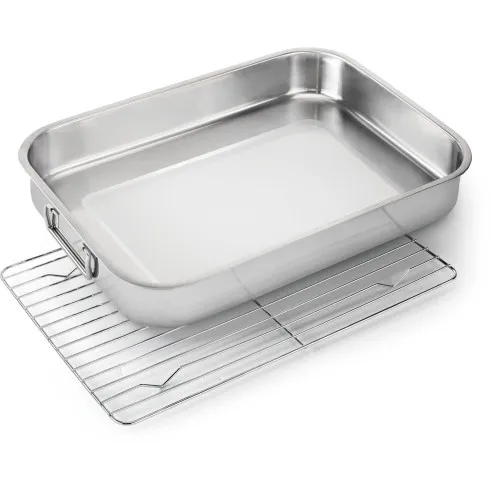 Ідеально підходить для приготування та запікання їжі, ця жаровня з нержавіючої сталі - саме те, що вам потрібно для приготування великої сімейної вечері, незалежно від того, чи використовуєте ви гриль Napoleon або духовку. Решітка з нержавіючої сталі, що входить в комплект, є двосторонньою і забезпечує платформу для підняття вашого жаркого, щоб збирати смачні соки, які можна використовувати для приготування найчудовіших соусів і підливок. Ця жаровня з нержавіючої сталі досить велика і глибока, відмінно підходить для збирання жиру, запікання овочів і, звичайно ж, для утримання хорошого жаркого. Міцні складні ручки дозволяють легко переміщати великі страви на барбекю та плиту та назад, і навіть у посудомийну машину для легкого очищення. Наші розумні, багатофункціональні та прості в обслуговуванні аксесуари надають вам все необхідне для приготування смачних страв на грилі, а також багато іншого для розширення кулінарного арсеналу за допомогою різноманітних творчих доповнень, що розширюють ваші кулінарні горизонти.
