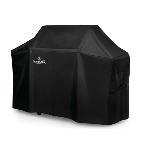 Удобный чехол, который поможет защитить Ваш гриль от плохих погодных условий, пыли и так далее. Защитите свой газовый гриль Napoleon серии Prestige или PrestigePRO высококачественным чехлом для гриля. Этот чехол для гриля изготовлен из прочного ПВХ полиэстера. Данный материал чехла защищает от ультрафиолетового излучения и предотвращает выцветания цвета, а так же оснащен 7 сантиметровой вентиляционной полосой, которая уменьшает накопления влаги под чехлом. На чехле вышит большой логотип Napoleon, также есть две металлические петли для подвешивания для хранения, когда чехол не используется.