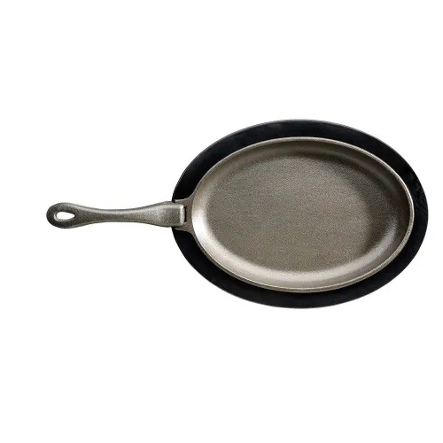 Чугунная сковорода для гриля со съемной ручкой и термостойкой подставкой: