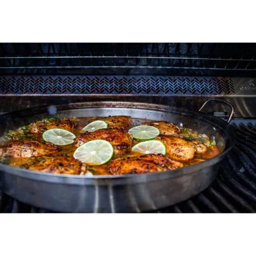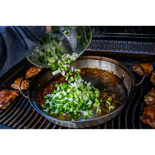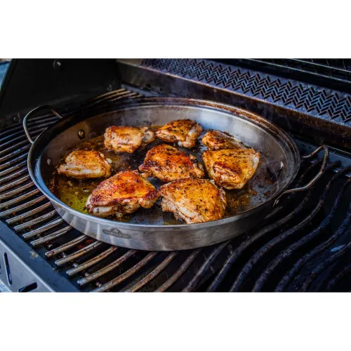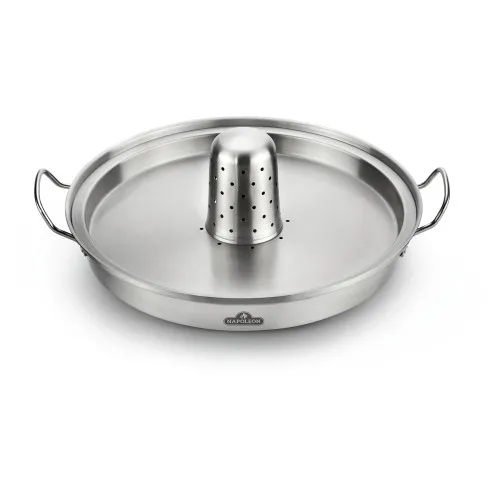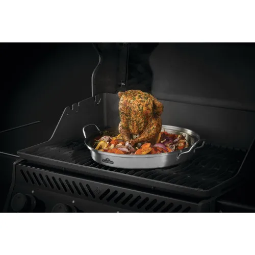 С помощью жаровни для курицы Napoleon вы можете легко приготовить полноценное блюдо из жареной курицы, гарнира и соуса. В комплект из трех предметов входит противень с плоским дном, крышка и конус-ароматизатор, которые придадут вашей птице необыкновенно сочный и ароматный вкус.