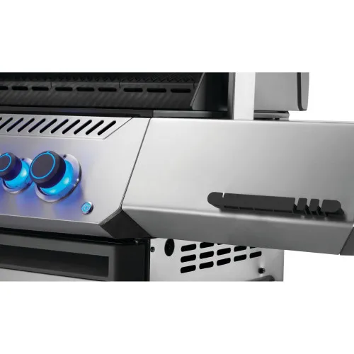 Но Napoleon Prestige также привлекает внимание: благодаря новому дизайну гриль выглядит минималистично и цельно. Боковые столики идеально выровнены с панелью управления, а удлиненная крышка с прямой ручкой и дверцы с горизонтальными утопленными ручками создают элегантный, обтекаемый вид.