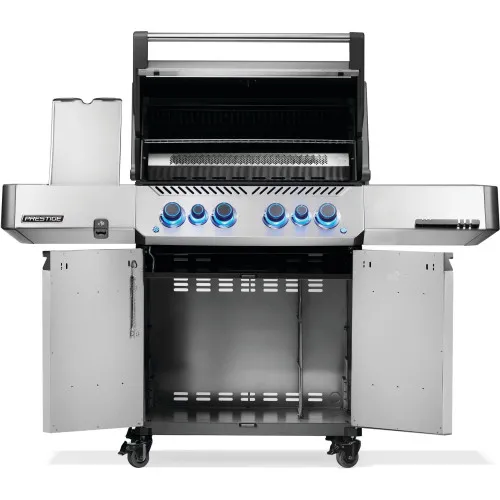 Napoleon Prestige 500 – с SIZZLE ZONE и задней горелкой. Napoleon Prestige 500 может похвастаться рядом технических и визуальных улучшений: сверхширокая инфракрасная задняя горелка, увеличенная зона SIZZLE, легко очищаемые решетки из нержавеющей стали WAVE толщиной 8,5 мм и складная решетка для подогрева из нержавеющей стали делают Prestige 500 первоклассным, полностью укомплектованным грилем.