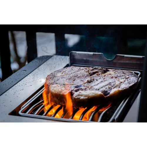 Инфракрасная боковая горелка SIZZLE ZONE. От 0 до 800 °C всего за 30 секунд! На большой инфракрасной горелке SIZZLE ZONE от Napoleon вы можете придать своим стейкам и бургерам восхитительную корочку и аппетитный запеченный аромат всего за несколько секунд. Незаменимая функция для всех любителей мяса: плавно регулируемая боковая горелка идеально подходит для приготовления хрустящих блюд в воке, а также гарниров и соусов. Зона SIZZLE в гриле Prestige 500 Connected оснащена регулируемой по высоте решеткой из нержавеющей стали, позволяющей готовить при любой температуре.