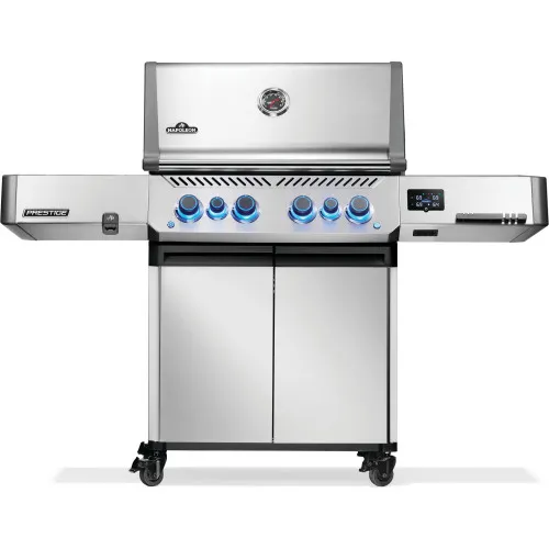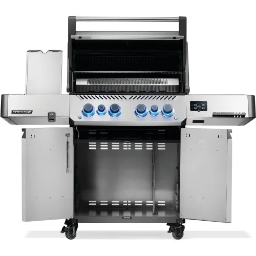 Сверхширокая инфракрасная задняя горелка, увеличенная горелка SIZZLE ZONE, легко очищаемые решетки для приготовления пищи WAVE из нержавеющей стали и складная решетка для подогрева из нержавеющей стали – все это входит в стандартную комплектацию Prestige 500 Connected премиум-класса. В дополнение к этим особенностям, этот гриль премиум-класса из серии Napoleon Prestige также оснащен интеллектуальными средствами управления, которые надежно гарантируют вкусные блюда и довольных гостей на вашей следующей барбекю-вечеринке.