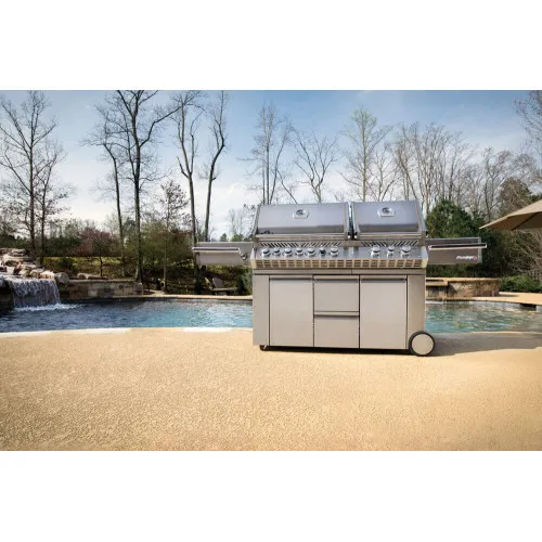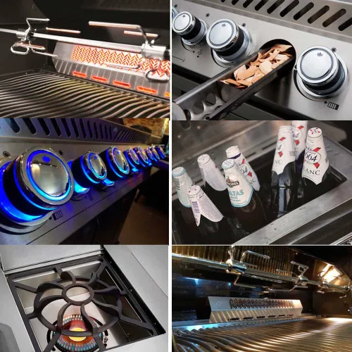 Серия газовых грилей Prestige PRO - это красота и производительность. Новый газовый гриль Napoleon Prestige PRO-825 - это гриль с двумя секциями (одна секция с трубчатыми горелками и одна секция с инфракрасными керамическими горелками), задней инфракрасной горелкой для вертела и нижними основными инфракрасными керамическими горелками. Невозможно описать словами все преимущества инфракрасных горелок - это нужно попробовать. В этом гриле есть все что необходимо и даже больше. Это топовый газовый гриль-барбекю для гриллинга, со всеми стандартными и не стандартными функциями, которые Вы знаете и любите от компании Napoleon. Стандарт это хорошо, но компания Napoleon задаётся вопросом: "Как нам сделать гриль лучше?" Ответ - газовый гриль Napoleon Prestige PRO-825. Вся конструкция из нержавеющей стали с акцентированными хромированными вставками не только прочная, но и красивая. Этот блестящий драгоценный камень имеет современный пьедестал, который имеет много места для хранения, а дверцы с доводчиками и выдвижные ящики добавляют удобства в использовании. Две щедрые боковые полки обеспечивают дополнительную комплексную рабочую поверхность. В одной боковой полке интегрированные: ведро для льда, разделочная доска, держатели для напитков, соусов, спецовниц, инструментов и полотенец. На боковой полке с другой стороны установлена двухступенчатая комбинированная мощная горелка, которая оборудована инфракрасной горелкой в центре. Также PRO-825 имеет внутреннее освещение для ночного гриллинга и улучшенные кнопки управления с подсветкой Night Light. В этом гриле приготовление блюд никогда не будет прежним. Представьте себе, в одном отсеке можно жарить мясо на вертеле, а в другом выпекать торт. Этот гриль можно использовать, как духовой шкаф. Данный гриль позволяет выпекать: хлеб, торты, печенье, идеальную пиццу или кальцоне. Гриллинг "сильным обжигом" с точным контролем температуры. Благодаря двум камерам для приготовления, возможно приготовить идеальные стейки. Нужно обжарить стейки на сильном огне в отсеке с нижними горелками SIZZLE ZONE, а после в доводить до готовности в основном отсеке с трубчатыми газовыми горелками. В этом гигантском газовом гриле можно разместить до 50 гамбургеров одновременно. Благодаря инновационному интегрированному лотку для щепы с выделенной газовой горелкой, газовый гриль PRO-825 легко используется как коптильня. Чтобы ни у кого не было сомнений, что это лучший функциональный газовый гриль, мы продолжим перечислять его преимущества. Скользящий подиум для легкого хранения и смены газового баллона. В процессе гриллинга было бы неплохо включить приятную музыку. Благодаря удобному встроенному удлинителю, это возможно сделать. Подключите к питанию газового гриля Napoleon Prestige PRO-825 подсветку, вертел и даже звуковую систему, в то время как Вы готовите. Больше, двухсекционный, с трубчатыми газовыми горелками в одно отсеке, с керамическими инфракрасными горелками в другом отсеке, задняя инфракрасная горелка для вертела, усиленная боковая горелка, вот что нужно было сделать чтобы стать лучшим газовым грилем. Конструкция полностью из нержавеющей стали. Также встроенное внутреннее освещение для гриллинга в вечернее время суток.