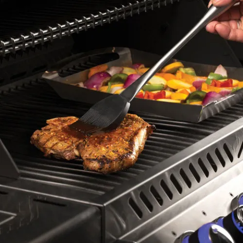 Набор состоит из удлиненной лопатки, щипцов и кисточки для маринада. Все три прибора идеально подходят для приготовления стейков и других блюд на гриле. Лопатка оснащена зубчатым краем и лезвием. Щипцы оснащены замком-фиксатором, который держит прибор в закрытом состоянии. Все приборы оснащены удобными крючками для подвешивания. Лопатка, щипцы и кисточка изготовлены из высококачественной нержавеющей стали. Щетина кисточки – из силикона.