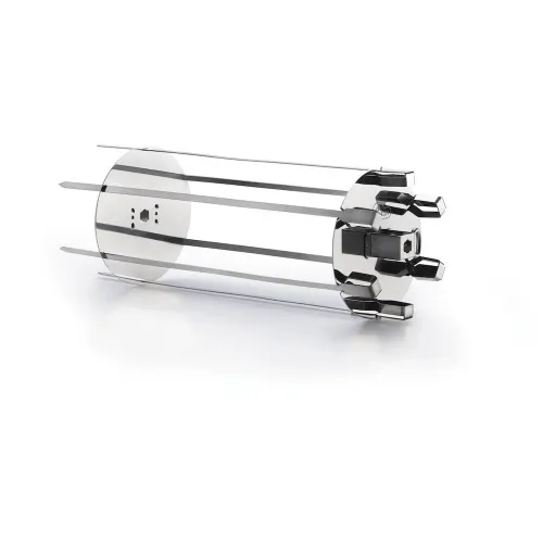Приготовление на вертеле не ограничивается только куриными или свиными шашлыками. Используйте шампура для вертела Наполеон для приготовления кебаба из любого вида мяса, которое любют Ваши близкие и друзья. Начните готовить разнообразные блюда новым способом, при помощи вертела. Наносите любимые соусы на мясо, пока оно вращается на вертеле. Поверхность данного аксессуара покрыта слоем хрома, что помогает легко чистить все компоненты шампуров и благодаря чему они прослужат долго. Просто поместите аксессуар на вертел и разместите шампура с мясом на специальные круглые крепления.