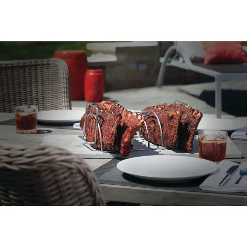 Держатель Наполеон изготовлен из нержавеющей стали, которая прочна, долговечна и не ржавеет. Дизайн с прорезями и отверстиями позволяют жиру стекать вниз, а теплу равномерно распределяться. Приспособление можно мыть в посудомоечной машине, что облегчает его чистку после использования. Купить держатель для ребрышек Наполеон по привлекательной цене вы можете в интернет-магазине Napoleon, который специализируется на реализации товаров этого бренда.