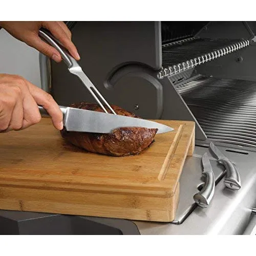 Разделочная доска от Napoleon – это очень практичный аксессуар для барбекю, благодаря которому Ваше рабочее место всегда будет выглядеть опрятным и чистым. Доска внушительной толщины, изготовлена из прессованного бамбука. Углы доски закруглены, а поверхность имеет антибактериальные свойства. В разделочную доску встроены две емкости из нержавеющей стали, которые легко выдвигаются, снимаются или прячутся под поверхность доски. Благодаря этим двум емкостям при нарезании можно сразу собирать и утилизировать пищевые отходы. В то же время по краям поверхности доски расположен желоб для стока жидкости, которая сразу попадает в одну из емкостей.