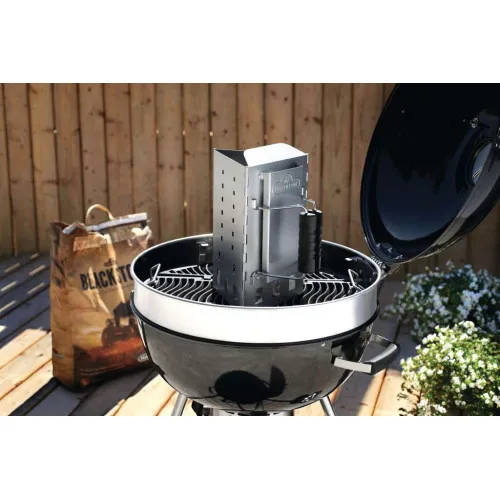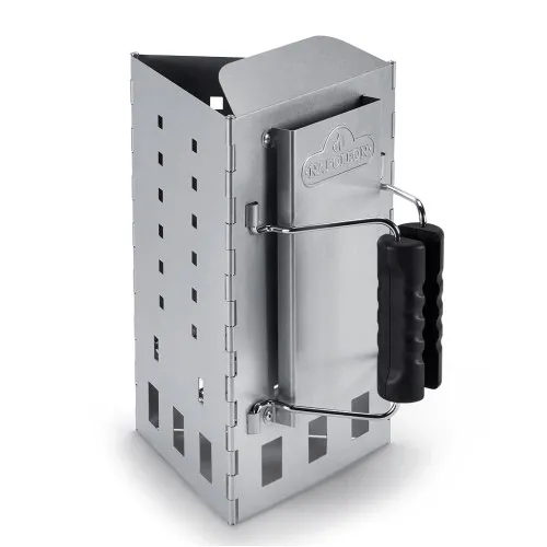 Аксессуар предназначен для угольных грилей. При помощи стартера Вы легко и безопасно сможете разжечь уголь или угольные брикеты и создать необходимый жар. Стартер позаботится о том, чтобы в процессе прогорания углей или брикетов, Вы могли спокойно заниматься другим делом. Треугольная форма стартера обеспечивает максимальную циркуляцию воздуха и прогорание углей и брикетов происходит в нем на 30% быстрее, чем в цилиндрическом. Наполните стартер углем или угольными брикетами, поместите его в гриль на нижнюю решетку над розжигами. Проследите за тем, чтобы нижние угли в стартере разгорелись от розжигов. Теперь у Вас есть 15 минут времени, чтобы сделать заготовки для барбекю или пообщаться с друзьями. Стартер позаботится о готовности углей. Изготовлен из аллюминизированной стали, что обеспечивает прочность и легкость данного аксессуара. Удобная ручка из жаростойкого пластика с дополнительной защитой от жара обеспечивает безопасность в использовании.