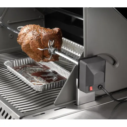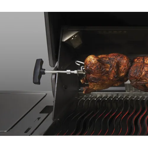 Блюда приготовленные в гриле на вертеле являются одними из лучших. Блюда с вертела являются сочными и отлично подойдут для того, чтобы накормить большое количество людей. Готовьте блюда ресторанного качество на вертеле прямо на собственном заднем дворике. Большой квадратный стержень из нержавеющей с сверхмощным двигателем справится с любым куском мяса. Вилки для мяса будут крепко держать продукт, который Вы готовите.
