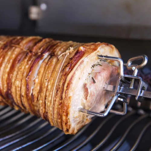 Блюда приготовленные в гриле на вертеле являются одними из лучших. Блюда с вертела являются сочными и отлично подойдут для того, чтобы накормить большое количество людей. Готовьте блюда ресторанного качество на вертеле прямо на собственном заднем дворике. Большой квадратный стержень из нержавеющей с сверхмощным двигателем справится с любым куском мяса. Вилки для мяса будут крепко держать продукт, который Вы готовите.