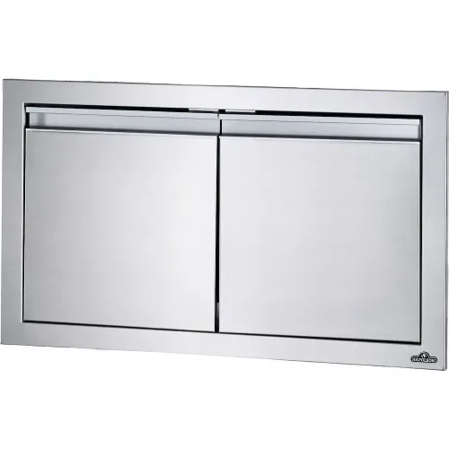 Встраиваемая двустворчатая дверь от Napoleon® изготовлена из нержавеющей стали, что гарантирует ее долговечность и стойкость к коррозии. Имеет правую и левую створки. Оснащена доводчиками для мягкого закрытия. Дверные ручки изготовлены из анодированного алюминия, благодаря чему дверь не только презентабельно выглядит, но и защищена от царапин и быстрого износа.