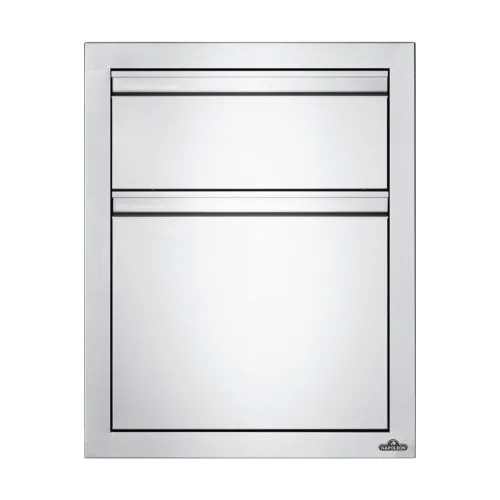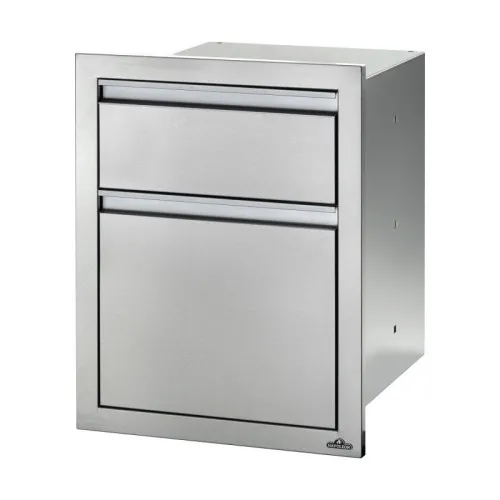 Этот встраиваемый шкаф состоит из одного выдвижного ящика для хранения аксессуаров для барбекю или специй и глубокого отсека для хранения кастрюль, сковородок и другой посуды. Шкаф изготовлен из нержавеющей стали и оснащен доводчиками для мягкого закрытия ящиков. Удобные ручки ящиков изготовлены из анодированного алюминия, что гарантирует их долговечность и стойкость к царапинам.