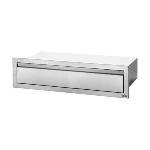 Этот стильный встраиваемый элемент состоит из одного широкого и вместительного выдвижного ящика, который изготовлен из нержавеющей стали и оснащен доводчиками для мягкого закрытия. Удобная ручка ящика изготовлена из анодированного алюминия, что гарантирует долговечность и стойкость к царапинам. Идеально подходит для хранения аксессуаров для барбекю, специй и других принадлежностей на Вашей летней кухне.