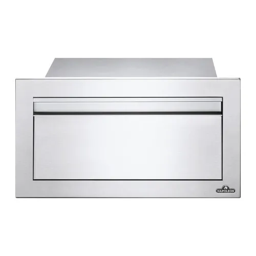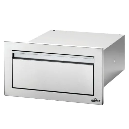 Этот стильный встраиваемый элемент состоит из одного небольшого выдвижного ящика, который изготовлен из нержавеющей стали и оснащен доводчиками для мягкого закрытия. Удобная ручка ящика изготовлена из анодированного алюминия, что гарантирует долговечность и стойкость к царапинам. Идеально подходит для хранения аксессуаров для барбекю, специй и других принадлежностей на Вашей летней кухне.