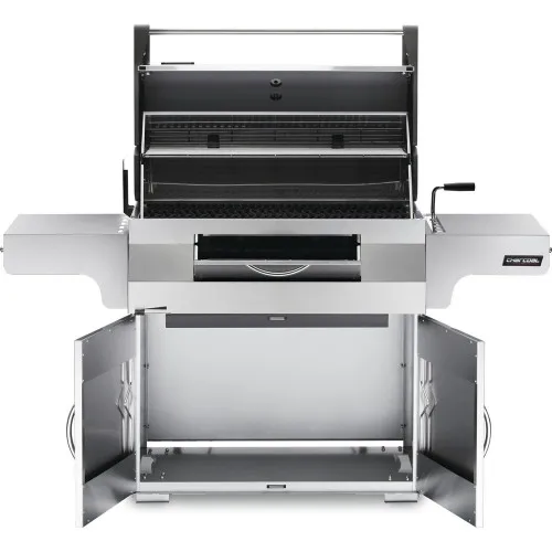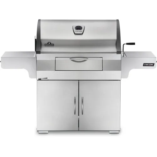 Ви любите традиційний грилінг? Якщо приготування на вугіллі це найкращий спосіб для грилінгу, то вугільний гриль PRO605CSS Professional є ідеальним грилем для Вас. Елегантний вугільний гриль PRO605 поєднує велику стійку конструкцію (як газовий гриль) з традиційним вугільним грилем для отримання неймовірних результатів. Створивши цю модель, компанія Napoleon отримала найкраще із двох світів грилів – дизайн зі світу газових грилів та традиційне приготування зі світу вугільних грилів. Цей гриль має значну поверхню для приготування 46 см х 86 см. Уявіть, Ви можете приготувати до 32 гамбургерів за раз, не маленьких, а великих по 10 см у діаметрі кожен. Також гриль має просторі бічні полиці, які дають Вам зручну робочу поверхню. У бічні полиці інтегровані гачки для аксесуарів, щоб необхідні прилади для грилінгу завжди були під рукою. Вугільний гриль у стилі газового. Гриль обладнаний кришкою LIFT EASE - це двостенная кришка, яка зберігає жар гриля і економить простір. Дверцята на фронтальній частині гриля для простого та зручного доступу до піддону з вугіллям. Додайте вугілля в процесі приготування, просто відкрийте кришку і досипте стільки вугілля, скільки потрібно. Корпус із нержавіючої сталі не тільки гарний, але й стійкий від корозії. Легко натирається серветкою. Для додаткового стилю, дверні ручки та кришка не хромовані. Золосбірник і жировловлювач висувний, для легкого та швидкого очищення коли Ви закінчите приготування. Завдяки чому Ваш вугільний гриль Napoleon PRO-605 зберігає бездоганний стан. Найдивовижніша особливість у унікальному вугільному грилі для професіонала, є ексклюзивний задній знімний пальник для рожна. Дійсно, деревне вугілля є паливом заднього пальника для рожна. Завдяки цьому пальнику цей гриль не поступається за функціоналом газовому побратиму. Готуйте досконалі страви на рожні на вугільному грилі. Люди не віритимуть Вам, коли Ви скажете їм, що Ви приготували на цю страву на вугільному грилі.